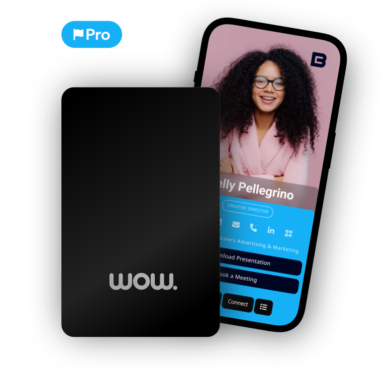 Elevate your style with a WOW Metal card. This sleek, matte, black metal card comes with embedded smart NFC technology and a dynamic QR code for fast sharing using phone tapping and QR Code scanning, designed to make a lasting impression on your connections.